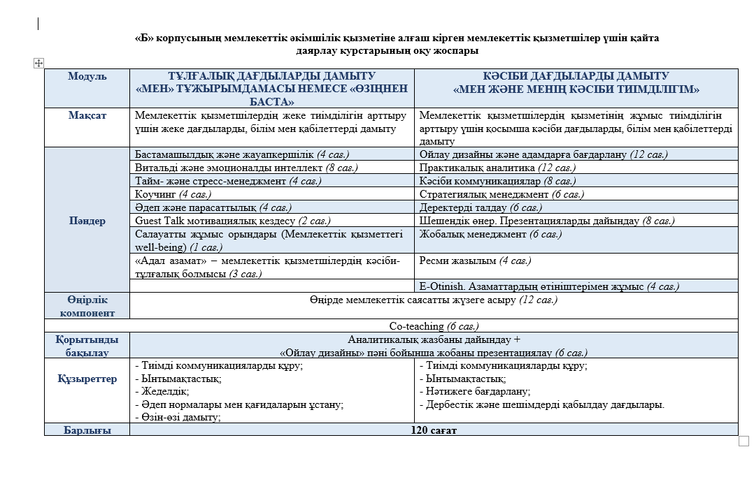 Мемлекеттік әкімшілік қызметке алғаш кірген мемлекеттік қызметшілерді қайта даярлау курстары (күндізгі оқу нысаны бойынша)